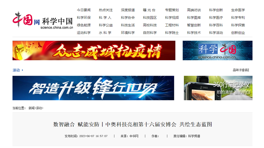 2023年6月7日-10日,為期4天的2023第十六屆(2023)中國國際社會公共安全產品博覽會(以下簡稱安博會)在北京首鋼會展中心圓滿落幕。杭州中奧科技有限公司(簡稱“中奧科技”)“重拳”出擊,以“ 凝聚生態伙伴 共創數智融合生態新格局 ”為主題,盛裝亮相2023安博會,得到了眾多合作伙伴、相關企業的熱情關注,同時受邀央視10科教頻道專題采訪,中國警察網、浙江日報、杭州日報、新浪等多家媒體相繼報道。在此向大家表示誠摯的謝意,感謝一同見證,參與此次展會。